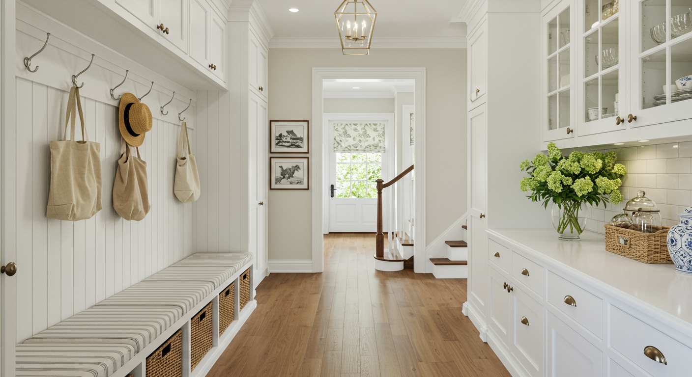 Reflecting key design elements found in summer homes from The Hampton’s to Nantucket, the home features incredible white wood-detailing throughout, from coffered ceilings, to bead board and wainscoting, to delightful built-ins and airy open-beam ceilings.